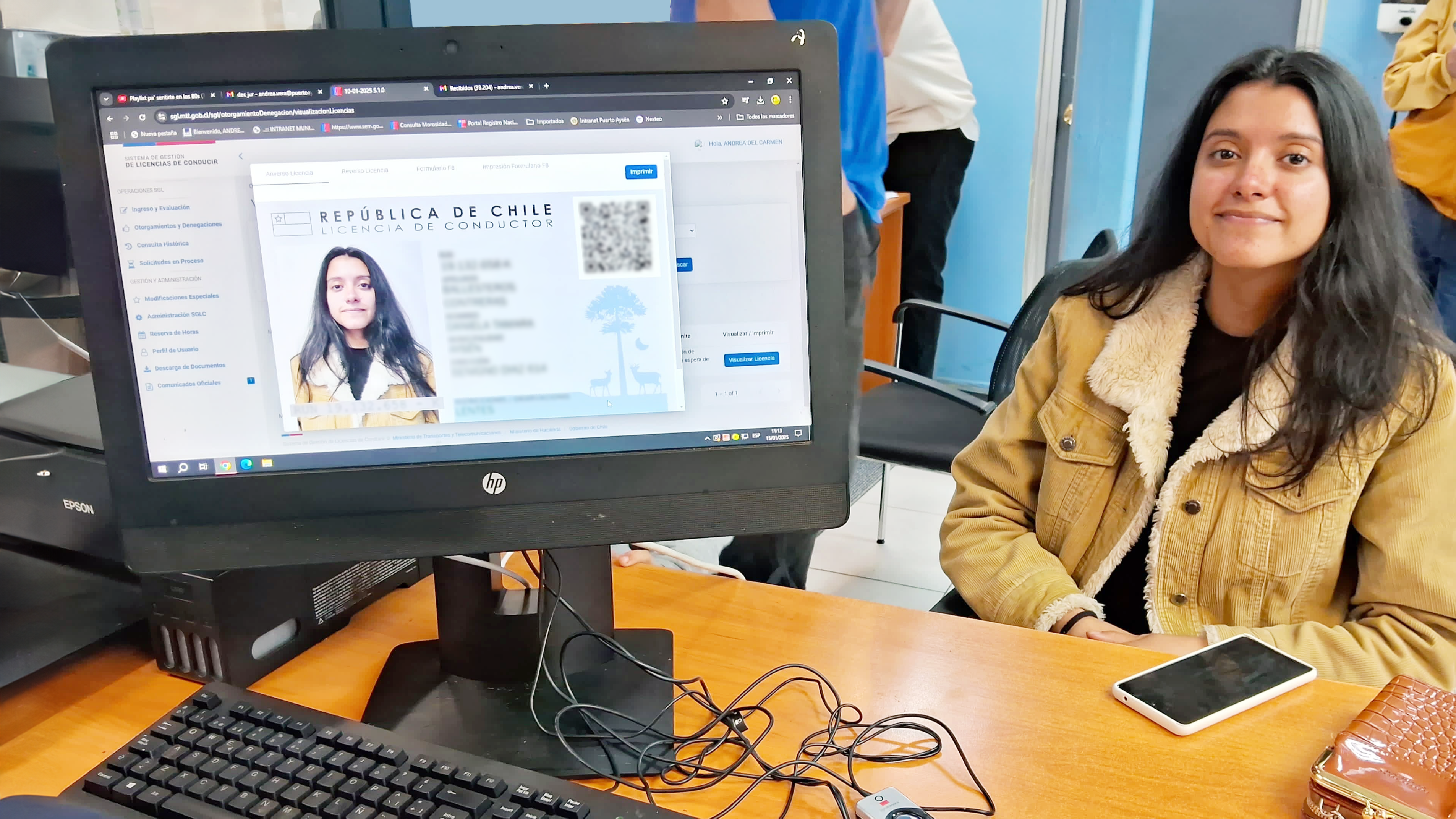 Debido al horario de atención temprano que tiene el municipio aysenino se pudieron realizar las gestiones para registrar la primera licencia de conducir digital de Chile, a una vecina de Puerto Aysén, Daniela Ballesteros.