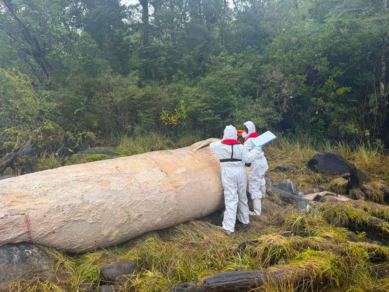 Durante la jornada del sábado, equipos de Sernapesca y de la Armada se trasladaron al sitio del hallazgo para levantar muestras y registrar el estado del ejemplar, constatando que se trataba de una ballena hembra de la familia Balaenopteridae (rorcual), de aproximadamente 11 metros de longitud. El cuerpo se encontraba completamente fuera del agua y expuesto a la acción de las mareas.