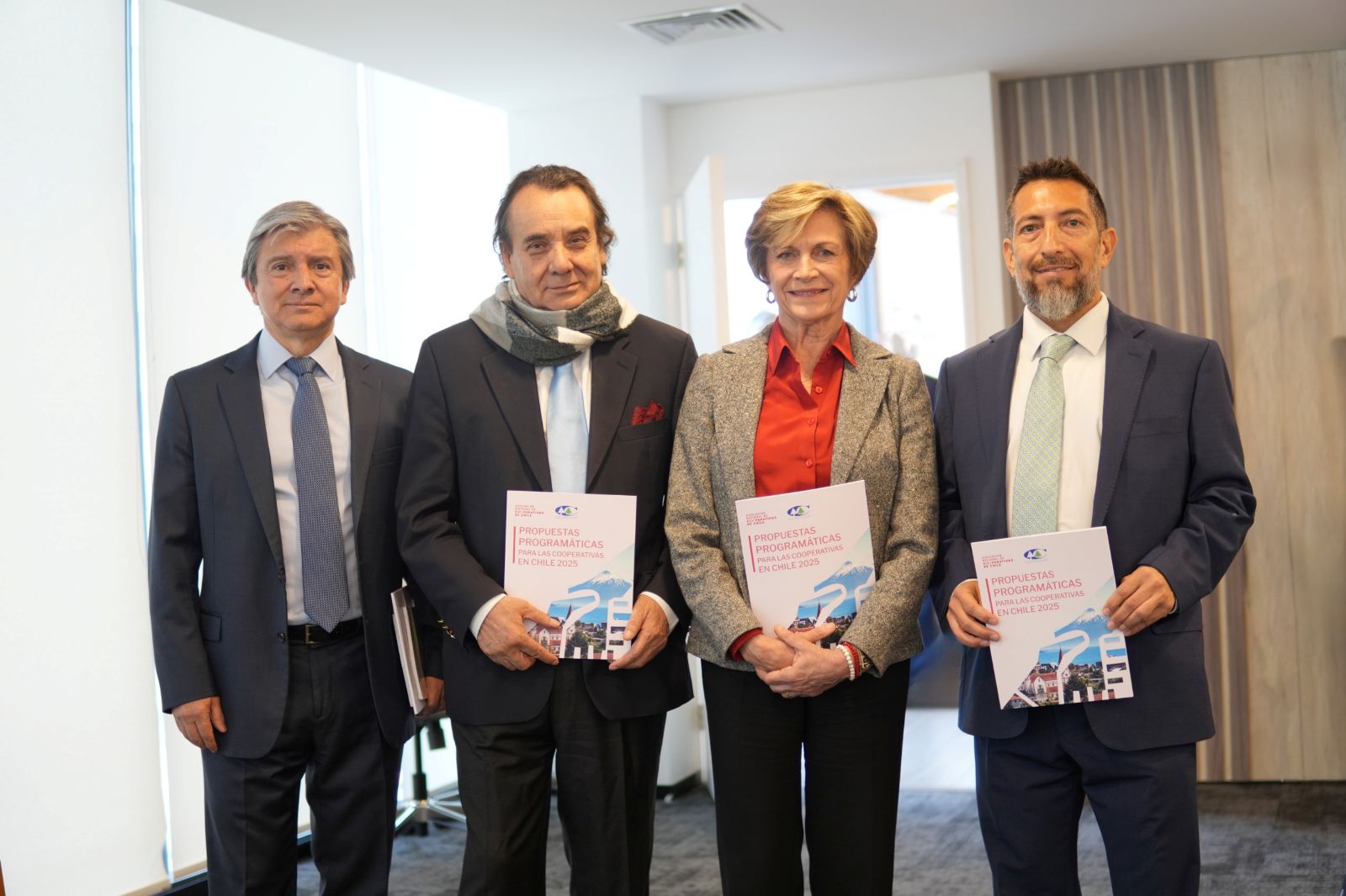 Santiago, 16 de octubre de 2025– En el marco del ciclo de encuentros con las principales candidaturas presidenciales del país, la Asociación Nacional de Cooperativas de Chile (ANCCh) y la Confederación General de Cooperativas de Chile (Confecoop) realizaron hoy una primera reunión con la candidata de la coalición de centro derecha Chile Grande y Unido, Evelyn Matthei, y su jefe del equipo económico, Gonzalo Sanhueza, para hacer entrega oficial del documento de propuestas programáticas del movimiento cooperativo chileno.