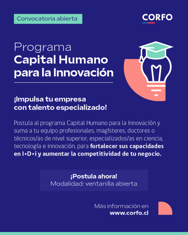 Coyhaique, febrero de 2026.– Corfo mantiene abierta la convocatoria del instrumento Capital Humano para la Innovación, que permite que empresas de todos los tamaños contraten talento altamente calificado para desarrollar soluciones basadas en actividades de Innovación, Desarrollo e Investigación (I+D+i). Esta versión suma requisitos más flexibles y busca fortalecer la capacidad innovadora de empresas ubicadas fuera de los grandes centros urbanos.